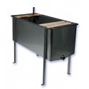 Grand bac pour l'étape de désoperculation. Il s'adapte à tous types de cadres (Voirnot, Langstroch, Davant...) grâce à une barre amovible réglable selon la largeur des cadres. Il possède une traverse de désoperculation en bois, un robinet à clapet PVC 40 x 49et une grille d'égouttage. Monté sur quatre pieds.